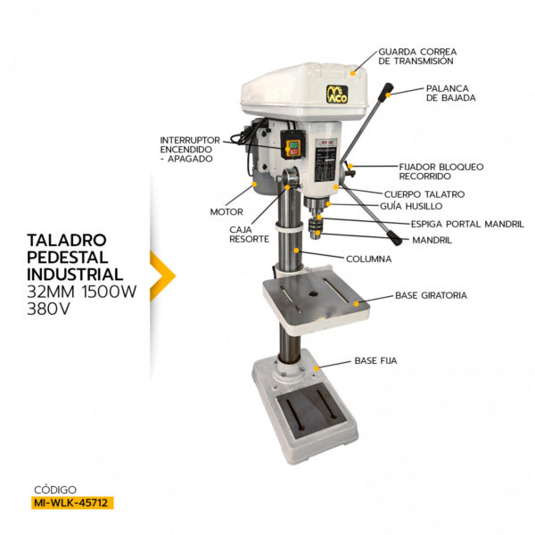 Taladro Pedestal 32mm 2HP 1500w 380v jz-32 West Lake