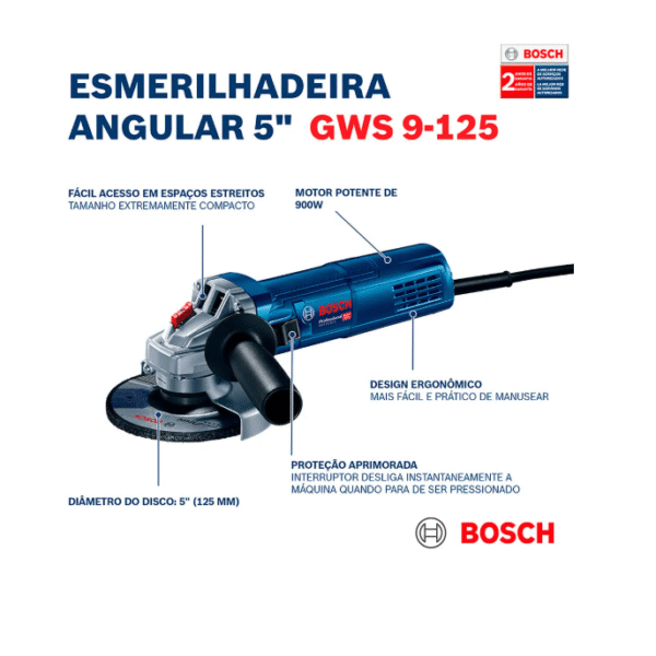 Esmeril Angular 5″ 900W GWS 9-125 Bosch