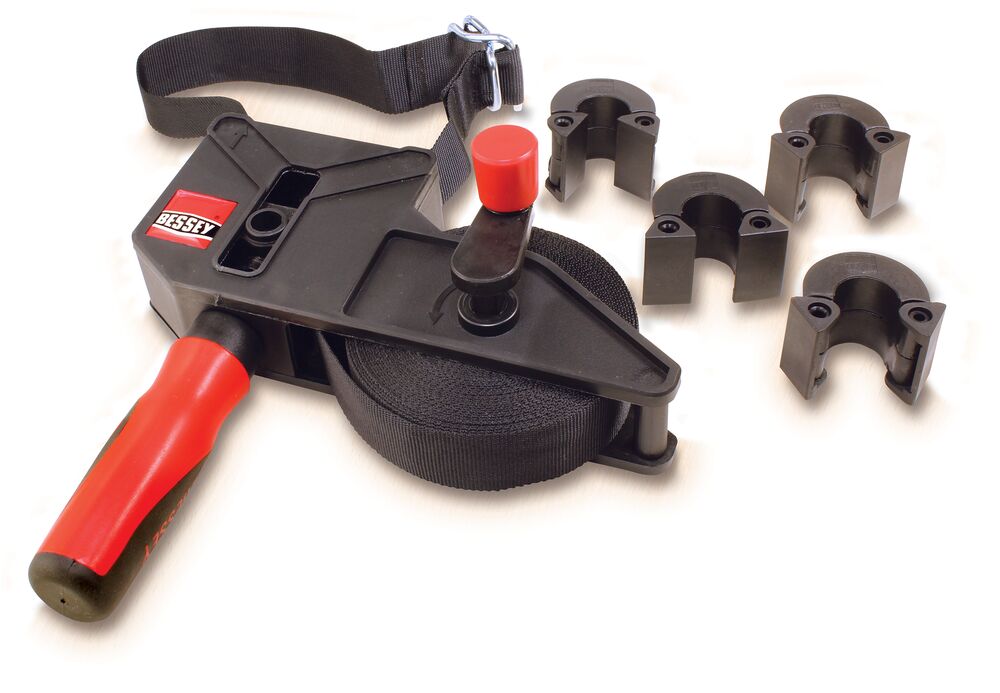 La sujeción de curvas, uniones poligonales o contornos cerrados es tradicionalmente una de las tareas de sujeción más difíciles. Estos proyectos tienen más éxito cuando se utilizan herramientas especiales de BESSEY, como el tensor de fleje BAN700 con sus prácticas esquinas Vario. Este dúo es adecuado siempre que se requiera una sujeción suave y sin distorsiones en todo el perímetro – para trabajos en madera, plástico y metal. Asegurado por un mecanismo automático de autobloqueo que garantiza una tensión uniforme en ambos lados y sólo se suelta cuando se libera la tensión. ¡Sin distorsiones ni tensiones!
